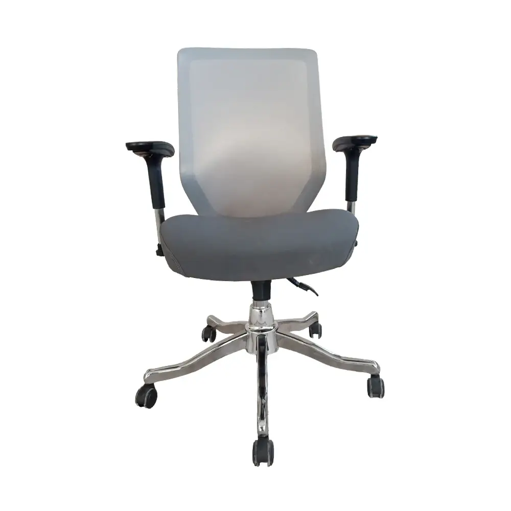 پایه پنجپر این صندلی از فلز کروم براق ساخته شده است که ضمن زیبایی، استحکام بالایی در برابر فشار و وزن بالا دارد. چرخهای پلیاورتان روان و بیصدا، حرکت نرم صندلی بر روی انواع سطوح را ممکن میسازند. دستههای قابل تنظیم و مقاوم نیز از جنس پلاستیک فشرده و فلز هستند که در عین استحکام، وزن کلی صندلی را سبک نگه میدارند.