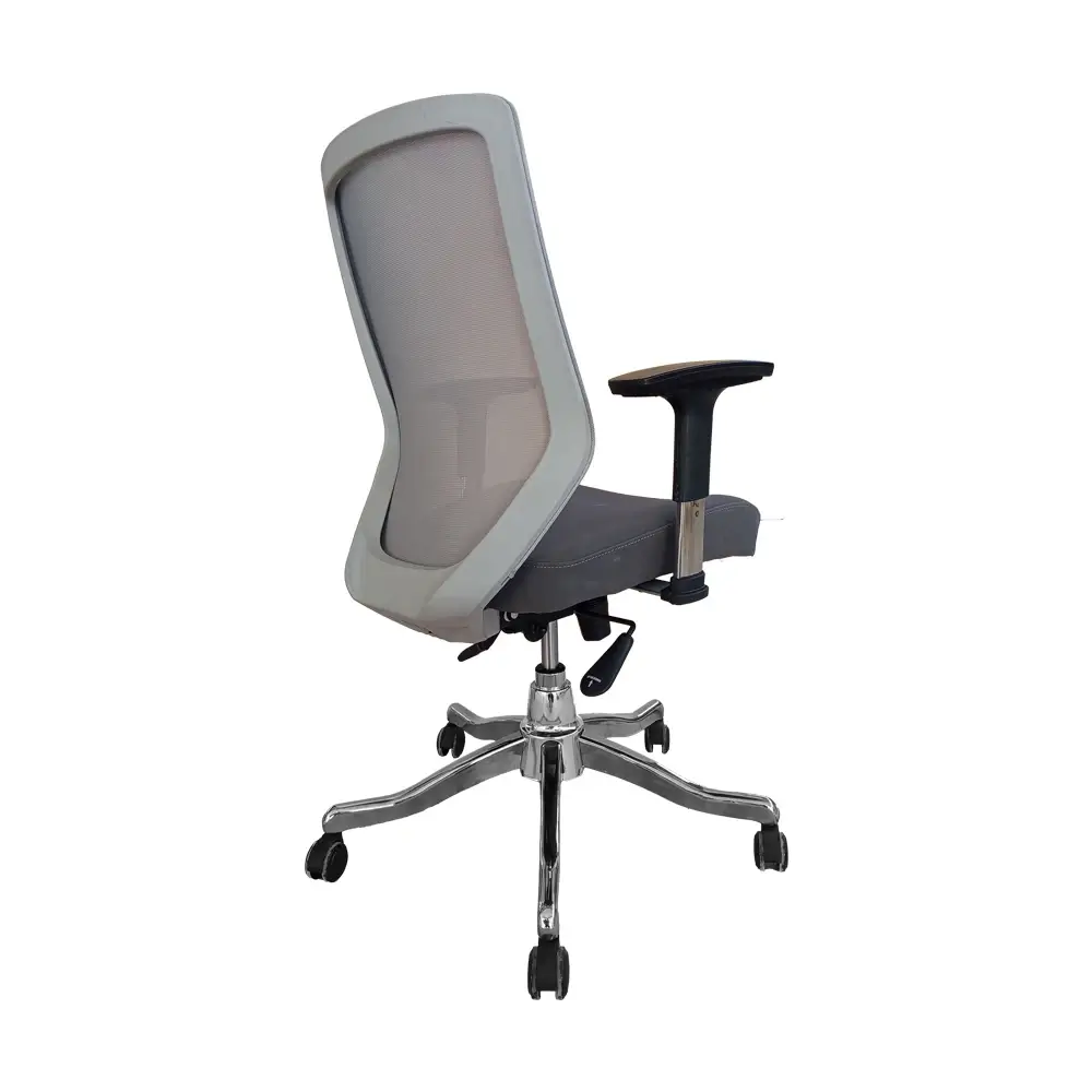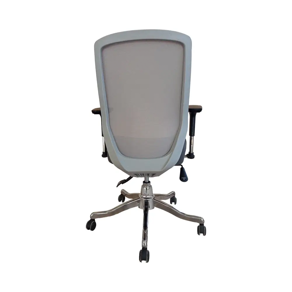 پشتی صندلی دارای قوس طبیعی برای حمایت از کمر است و به گونهای طراحی شده که در هر حالت نشستن، تکیهگاه موثری برای بدن فراهم کند. وجود مکانیزم قفل شونده و فنر تنظیم زاویه تکیهگاه، امکان تنظیم صندلی متناسب با وزن و وضعیت بدنی افراد مختلف را فراهم میسازد.