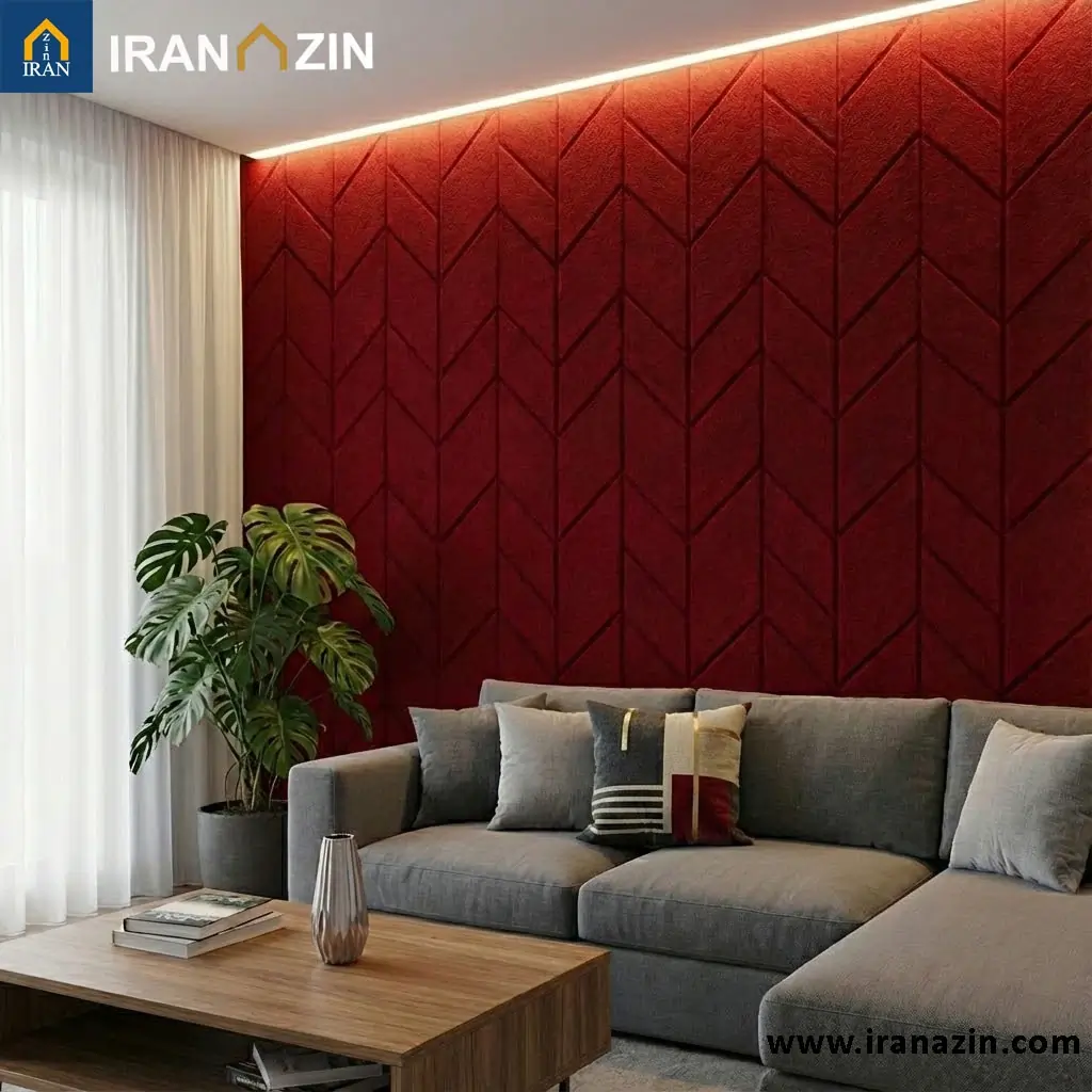 وول پنل قرمز علاوه بر کنترل صدا، جلوهای پرشور و خاص به دکوراسیون میبخشد.